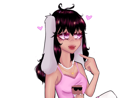 PersonaMy persona is a Bunny girl with lop bunny ears that can stand up, makes no sense but I like it. She has two forms, one with demon horns and fangs, and one without. She wears a pink silky dress with garters and thigh highs, a pearl necklace usually to go with it.